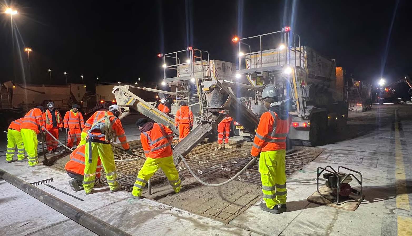 Eleven sections of defective concrete slabs at Birmingham International Airport were reinstated within live Code C stands using high early-strength concrete (Peragrene) to enable rapid replacement and early return to service.